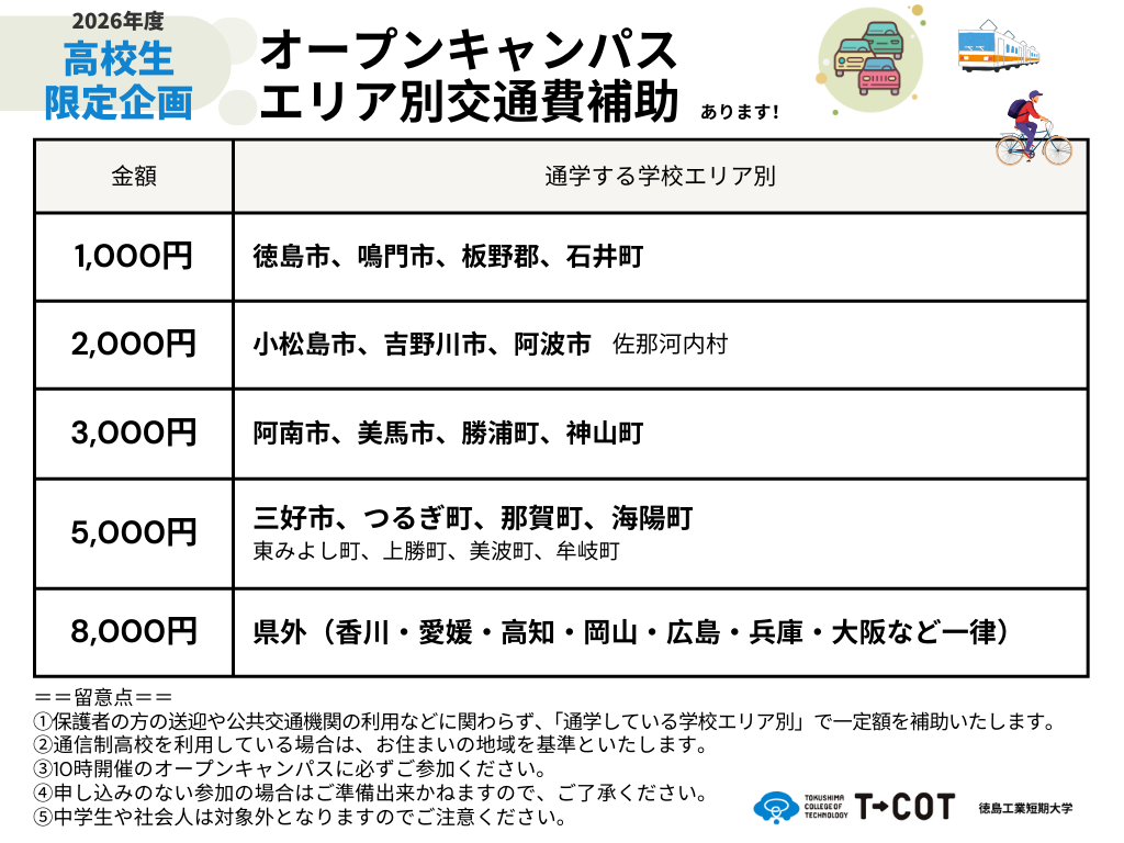 2026年4月から交通費補助の金額エリアに一部変更があります。ご確認ください。